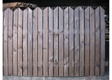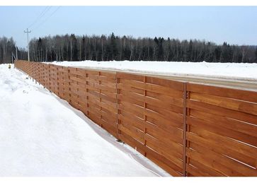 Секция деревянная, типа «штакетник», размер: высота 1.5 метра, длина 3 метра.Пиломатериал – строганные ламели в количестве26 штукразмером 22 мм96 мм1500 мм,собранные в рядна основание 30 мм 100 мм 3000 мм на оцинкованных саморезах.Металлические грунтованные столбы 60602500 с креплением для секции.Секция покрашена лессирующим антисептиком Туккурила RAL3168 в два слоя.Стоимость одной секции с установкой ее на участке Покупателя«Под ключ»- составляет1573, 85 рублей за один пог