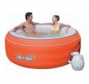 Bestway 54101 Бассейн надувной аэромассажный Технические характеристики: . Форма бассейна: круглая . Материал бассейна: винил + полиэстр . 80 массажных аэро-форсунок, запатентованная массажная система Lay-Z-Massage . Производительность фильтр-насоса: 1890 л/ч . Вместимость (80%): 900 л . Цифровое управление режимами работы . Вместимость: до 4 человек . Цвет: оранжевый . Артикул: 54101 . Гарантия: 14 суток . Торговая марка: США . Страна изготовления: КНР В комплекте: . Электрический фильтр-насос . Ремонтный комплект . Териленовый верх с прищепками (тент) . Шланг для надува бассейна . DVD по установке и использованию Размеры и вес в упаковке: 45 х 50 х 75 см / 29 кг Размеры (Д.Ш.В.): 206 х 206 х 71 см Вес: 26 кг Описание: Сегодня и у Вас есть возможность насладиться целебным аэромассажем и гидротерапией , испробовать все преимущества гидромассажа, и расслабиться в теплой воде с воздушными пузырьками. в надувном мини бассейне Lay-Z-SPA. Гидромассаж позволяет сочетать удовольствие от купания в теплой воде с полезным, стимулирующим и лечебным действием. Гидромассаж укрепляет и подтягивает кожу, помогает бороться с жировыми отложениями. Это быстрый способ похудения и формирования фигуры путем уменьшения жировых отложений и целлюлита. Гидромассаж быстро снимает накопившуюся усталость, легче происходит обмен веществ, улучшается общее состояние организма, и повышается настроение. Гидромассаж эффективен при профилактики варикозного расширения вен. Рекомендуется при болях в мышцах, для восстановления подвижности.Уникальность этой модели состоит в том, что ее можно быстро собрать или разобрать. Время сборки не превышает 15 мин. Надувная джакузи может устанавливаться в помещении и на открытом воздухе. В комплекте поставляется DVD диск с подробным видео-руководством по установке, управлению и обслуживанию джакузи. Купить по доступной цене бассейн надувной аэромассажный Bestway 54101 с доставкой по Москве и России Вы можете в интернет магазине SportLife. None Есть доставка