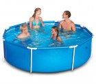 Bestway 56431 Бассейн круглый на стойках Технические характеристики: . Форма бассейна: круглая . Каркас: металлические стойки . Материал бассейна: 3-х слойный армированный ПВХ . Вместимость (90%): 1724 л . Гарантия: 14 дней . Артикул: 56431 . Производитель: США . Страна изготовления: КНР В комплекте: . Руководство по эксплуатации . Ремкомплект . DVD-диск с инструкциями по установке Размеры и вес в упаковке: 33 х 17 х 88 см / 13 кг Размеры (Д.Ш.В.): 244 х 244 х 61 см Вес: 11,2 кг Описание: Бассейн круглый на стойках Bestway 56431 очень легко и быстро устанавливается. Процесс сборки бассейна до наполнения водой занимает всего 30 минут. Бассейн изготовлен из высококачественного материала с применением особой технологии, которая придает стенкам бассейна тройную прочность. Стенки сделаны из трех отдельных слоев: два слоя плотного винила и один - полиэстр для особой прочности. Поддержанию формы бассейна Bestway способствует лента из полипропилена, опоясывающая весь бассейн. Также прочность бассейна обуславливается его коррозионностойким металлическим каркасом с гальваническим покрытием. Удобный сливной клапан присоединяется к садовому шлангу. Таким образом, воду можно слить в любое удобное место или, например, полить сад. Bestway 56431 это самый маленький круглый каркасный бассейн, диаметр которого составляет 244 сантиметра, а глубина 61 сантиметр. Этот бассейн, как никакой другой, подойдет для небольшой уютной дачи, где летом отдыхают дети. Небольшая глубина бассейна рассчитана в первую очередь именно на детей, но у родителей тоже есть возможность понежиться в воде, поддержать детскую игру или просто охладиться в жаркий день. Каркасный бассейн для дачи Bestway 56431 очень мобилен, легко устанавливается и еще проще собирается. Необходимо только найти ровную площадку. Семейный бассейн Bestway 56431, хоть и небольшого размера, но довольно вместительный. Поэтому, не раздумывая, ныряйте в него все вместе. Приобрести бассейн круглый на стойках Bestway 56431 Вы можете по