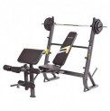 Hasttings HastDual Pro Cкамья со стойками Технические характеристики: . Нагрузка: изменяемая (свободный вес) . Рама: высокопрочная сталь с профилем 50 мм . Комфортное эргономичное сидение с вышивкой эмблемы шелковыми нитями по спинке . Регулировка стоек по высоте: нет . Штыри улавливатели на стойках . Угол наклона спинки: 4 положения . Регулировка сидения: 4 положения по горизонтали, 2 положения по вертикали . Регулировка парты Скотта по высоте: 3 уровня . 6 мягких роликов в тренажере для ног / пресса . Подходит для разнообразных тренировок и повышенных нагрузок . 2 органайзера для хранения дисков . Комплект ключей для сборки . Покраска: двухслойное порошковое покрытие матового графитового цвета . Гарантия: 1 год . Производитель: Великобритания . Страна изготовления: Китай . Максимальный вес пользователя: 120 кг . Максимальная нагрузка на опции: 85 кг . Максимальная нагрузка на скамью: 300 кг Рабочие станции: . Стойки под штангу . Парта для бицепса . Тренажер для ног двойного действия Размеры и вес в упаковке: 145 х 58 х 20 см / 45 кг Размеры (Д.Ш.В.): 195 х 122 х 145 см Вес: 42 кг Внимание! Штанга в комплект поставки не входит. Описание: Hasttings HastDual Pro самая мощная в линейке Hfsttings cкамья со стойками отлично подойдет для тех, кто принял решение всерьез заняться спортом. Тренажер подойдет для выполнения упражнений, направленных на различные группы мышц: упражнения для четырехглавой мышцы бедра, жим штанги от груди лежа, упражнения для бицепса и для сгибания рук с гантелями и штангой. Мощная рама из стали с профилем 50 миллиметров рассчитана на максимальную нагрузку до 300 килограмм. Регулировка скамьи по горизонтали и вертикали обеспечивает непревзойденный комфорт во время занятий пользователям разного роста, позволив сконцентрироваться исключительно на работе мышц. Два штыря улавливателя на стойках облегчают работу со штангой и повышают безопасность при жимах штанги. Прочнейший тренажер для ног двойного действия с 6 мягкими валиками и штырём для д