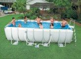Intex 28350 Бассейн каркасный Технические характеристики: . Форма бассейна: прямоугольная . Каркас: усиленные металлические стойки . Материал бассейна: 3-х слойный армированный ПВХ . Производительность фильтр-насоса: 2006 л/ч . Вместимость (80%): 6836 л . Удобный сливной клапан . Артикул: 28350 . Гарантия: 14 суток . Торговая марка: США . Страна изготовления: КНР В комплекте: . Электрический фильтрующий насос . Лестница . DVD по установке и использованию Размеры и вес в упаковке: 51 х 49 х 117см / 63 кг Размеры (Д.Ш.В.): 400 х 200 х 100 см Вес: 60 кг Описание: Каркасный бассейн Intex 28350 серии Rectangular Ultra Frame Pool являются следующим эволюционным шагом в производстве каркасных бассейнов. Прекрасно подходит для использования людьми самых разных возрастов. Прямоугольная форма бассейна позволяет более оптимально использовать пространство во дворе.Также вытянутая прямоугольная форма в длину понравиться любителям игры в волейбол в воде, а также любителям поплавать. Металлический каркас у этой серии прочнее чем у других, а сборка таких бассейнов проще, по причине применения специальной технологии изготовления. Процесс сборки бассейна до наполнения водой занимает всего 45 минут. Бассейн изготовлен из высококачественного материала с применением технологии Super-Tough, которая придает стенкам бассейна тройную прочность. Стенки сделаны из трех отдельных слоев: два слоя плотного винила и один - полиэстр для особой прочности. Детали каркаса бассейна окрашены с применением технологии порошкового напыления, что обеспечивает долговечность конструкции. В комплекте песчаный фильтрующий насос для очистки воды и все необходимые аксессуары: лестница, тент, подстилка. Фильтрующий насос обеспечивает рециркуляцию, очистку и дезинфекцию воды в бассейне, что позволяет менять воду не чаще 1 раза в месяц. Удобный сливной клапан присоединяется к садовому шлангу. Таким образом, воду можно слить в любое удобное место или, например, полить сад. Бассейн не нуждается в подготовке гру