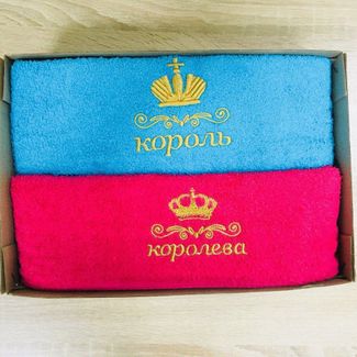 <p>Поистине, шикарным подарком на 14 февраля для влюбленных станет этот набор парных полотенец.</p> <p>Роль дополнения к основному подарку на День влюбленных парные полотенца с вышитыми символами царской власти и надписями "Король" и "Королева", также выполнят "на отлично".</p> <p>Мягкие, нежные и такие трогательные.</p> <p>Только представьте себе, как приятно получить такой подарок от единственного на всем белом Свете самого-самого любимого человечка.</p> <p>Любые слова здесь излишни - все и так ясно - любит искренне и по-настоящему сильно.</p> <p>Набор махровых полотенец из 100% хлопка с яркой вышивкой и аппликацией, состоящий из 2 полотенец, размером 10050, плотностью 450 гр/м2 удивят своей оригинальностью.</p> <p>В подарочный набор входит: 2 полотенца и подарочная коробка.</p> <p>Страна производитель:Россия</p> <p>Размер: 9050см</p> <p>Материал: 100% хлопок</p> <p>&nbsp;</p> Наличные, безнал., карты, эл. деньги, юр. лица Возможен самовывоз. Есть доставка.