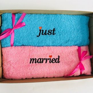 - Парные полотенца с вышивкой Just married по выгодной цене 999 р. руб.;