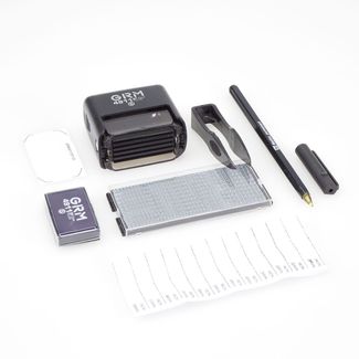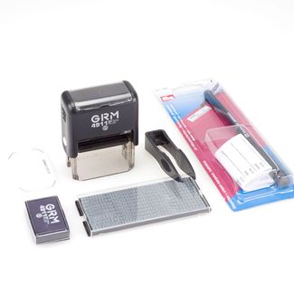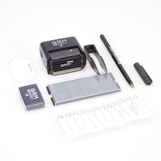 Набор N3 для маркировки одежды: GRM 4911 PLUS самонаб. штамп до 5 строк, 1 касса, 42х20 мм, 24 термобирки, маркер Prym (Германия)