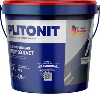 - Плитонит Гидроэласт 4 кг в каталоге Изоляторы и изоляционные материалы в Москве;