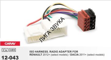 Переходник ISO CARAV 12-043 RENAULT 2012+ / DACIA 2011+ (выборочн. модели) ПЕРЕХОДНИК ISO (питание + акустика): ISO (female) <---> CARAV 12-043 <---> Штатный разъем (male)