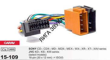 Разъем для подключения магнитолы CARAV 15-109 HEAD-ISO SONY CD-; CDX-; MD-; MDX-; MEX-; WX-; XR-; XT-; XAV-series / JVC KD-; KS-; KW-series РАЗЪЕМ ДЛЯ ПОДКЛЮЧЕНИЯ АВТОМАГНИТОЛЫ 16-pin разъем (female) <---> CARAV 15-109 <---> ISO (male) питание + акустика