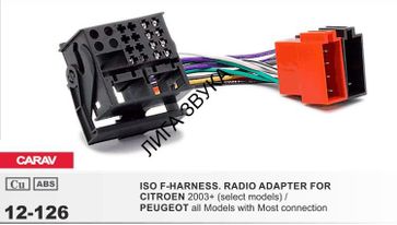 Переходник ISO CARAV 12-126 ISO-F CITROEN 2003+ (выборочн. модели) / PEUGEOT (все модели а/м с разъемом MOST) ПЕРЕХОДНИК ISO (питание + акустика): Штатный разъем (female) <---> CARAV 12-126 <---> ISO (male)