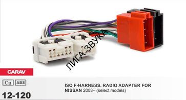 Переходник ISO CARAV 12-120 ISO-F NISSAN 1983+ (выборочн. модели) ПЕРЕХОДНИК ISO (питание + акустика): Штатный разъем (female) <---> CARAV 12-120 <---> ISO (male)