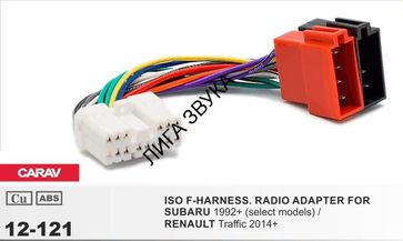 Переходник ISO CARAV 12-121 ISO-F SUBARU 1992+ (выборочн. модели) / RENAULT Traffic 2014+ ПЕРЕХОДНИК ISO (питание + акустика): Штатный разъем (female) <---> CARAV 12-121 <---> ISO (male)