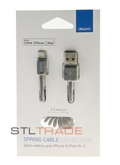 - USB-кабель Deppa для iPhone 5 6, 1,5м, MFI витой, черный по выгодной цене 550 р. руб.;