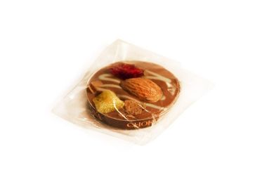 Маленькая шоколадка "Чоко" на основе молочного шоколада с миндалем, цукатами ананаса, сушеной клюквой и вафельной крошкой.