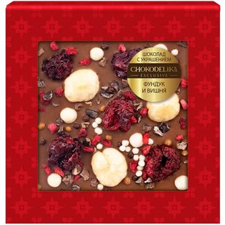 - Маленькая шоколадка Chokodelika с украшением "Фундук и вишня", 35 гр. по выгодной цене 220 р. руб.;