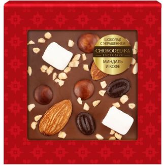 - Маленькая шоколадка Chokodelika с украшением "Миндаль и кофе", 35 гр. по выгодной цене 220 р. руб.;