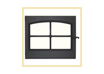 Дверца чугунная со стеклом для каминов. Размеры: внешние - 650х560 мм; посадочные - 565х480 мм. None