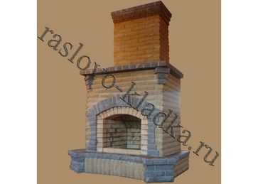 Камин из кирпича пристенный открытого типа с лучковым перекрытием топки. Камин облицован "рваным" кирпичом песчаного цвета. Верхний слой кладки портала, контур топочного проема, основание камина, а также основание и навершие трубы выполнены из "рваного" кирпича бурого цвета. Верхний слой основания камина и портала уширены на четверть длины кирпича. Два слоя основания и три слоя навершия трубы ступенчато уширены на 1/2 длины кирпича. Это, а также выполненные по углам верхней части портала четырехслойные выступы (повернутые относительно фасада камина на 45º), подчеркивает массивность камина и придает ему большую привлекательность. Фасадная часть основания камина в плане (вид сверху) имеет вогнутую форму. Углы основания скошены и повернуты относительно фасадной плоскости портала на 45º. Кладка фасадной части основания выполнена вертикально "на ребро". Размеры портала камина (ВхШхГ), мм: 1265х1290х1030. Размеры основания (ВхШхГ), мм: 290х1810х1290. В цену входит только стоимость работы. Материалы рассчитываются отдельно. Телефон мастера - +7-916-018-57-31. None