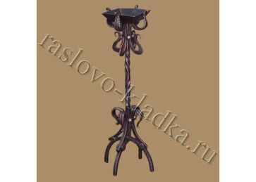 Кованая прикаминная пепельница. Размещена на удобной по высоте уровне на стойке размещеной на четырех массивных ножках. Габариты изделия: высота - 120 см; ширина - 20 см; глубина - 20 см. Масса изделия - 7 кг None