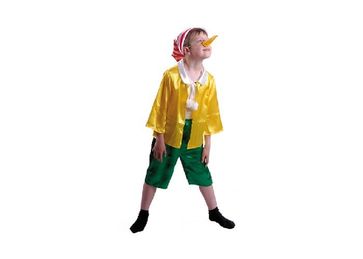 Маскарады, карнавалы, детские утренники – это погружение в сказочный мир, мир фантазии, радости и веселья. Это волшебные перевоплощения, которые несут в себе заряд позитивной энергии, дают установку на положительное самоутверждение личности и помогают освободиться от излишней робости и закомплексованности. В комплект входят желтая куртка, зеленые бриджи, полосатый колпачок. И какой же Буратино без носа? В комплект входит желтый нос, как аксессуар. Этот комплект подойдет абсолютно любому мальчишке, которому рассказывали сказку о золотом ключике. Ваш ребенок сможет воплотить в реальность т