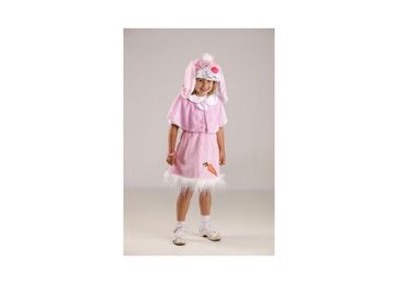 Маскарады, карнавалы, детские утренники – это погружение в сказочный мир, мир фантазии, радости и веселья. Это волшебные перевоплощения, которые несут в себе заряд позитивной энергии, дают установку на положительное самоутверждение личности и помогают освободиться от излишней робости и закомплексованности. Детский карнавальный костюм сшит для девочки. Розовая юбчонка, жилетка с белым, пушистым воротничком и застежкой на молнии. Девичья маска-шапочка зайчишки с длиннющими ушами, очаровательной улыбкой и двумя никак не помещающимися зубками. На юбочке нашивка - морковка. Ваш ребенок сможет воплотить в реальность тот образ, который ему мил и дорог! Размер: возраст 4-7 лет (рост 122-128 см). Материал: плюш - очень нежный и прятный на ощупь материал. <p style="fon