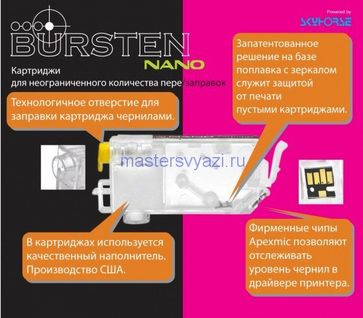 - Перезаправляемые нано-картриджи BURSTEN NANO CANON PGI-425 CLI-426 x 5 шт. с авточипами по выгодной цене 1 980 р. руб.;