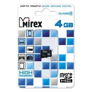 - Карта памяти Micro SDHC 4Gb Mirex Class 4 без адаптера (13612-MCROSD04) по выгодной цене 177 р. руб.;