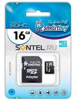 - SB16GBSDCL10-01, карта памяти Micro SDHC 16GB Class 10, с адаптером, SmartBuy по выгодной цене 350 р. руб.;
