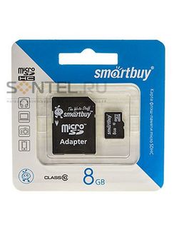 - SB8GBSDCL10-01, карта памяти MicroSDHC 8GB, Class 10, с адаптером, SmartBuy по выгодной цене 250 р. руб.;