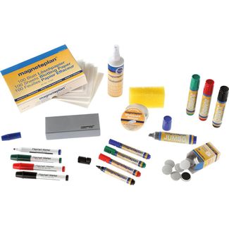 Набор принадлежностей для досок и флипчартов Magnetoplan состоит из: Стиратель магнитный, Салфетки для стирания, 100 шт, Спрей-очиститель, 250 мл, Универсальный очиститель Magnetoplan® в комплекте с губкой, Набор разноцветных маркеров Magnetoplan®, 4 шт, Набор разноцветных маркеров для флипчартов, 4 шт, Набор разноцветных маркеров Jumbo для флипчартов, 4 шт, Магниты Standart серые, диаметр 30 мм, 10 шт. None