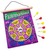 Дартс - не простой, он - двусторонний!На одной стороне располагается игра РАЗВЛЕКАЛОЧКА и поле с безобидными, но веселыми заданиями, например, "весь вечер используй вместо стакана половник" или такие "танец на столе", "выпить без рук" и множество других. А в самый разгар вечеринки рекомендуем перейти на более зажигательный вариант - игры на раздевание и распитие напитков РАЗЛИВАЛОЧКА и РАЗДЕВАЛОЧКА с заданиями "сними любые две вещи", "сними одну вещь снизу", "одень одну вещь" и т. д. Только для самых весёлых вечеринок в офисе и дома! Скучать не придется))