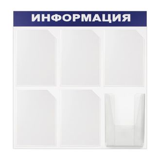 Доска-стенд Информация (75х75 см), 6 карманов А4 (5 плоских + 1 объемный), ЭКОНОМ, BRAUBERG, 291013