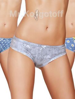 Трусики-слип из хлопка с эластаном, эффект "джинсовой ткани", спереди аппликация в виде бантика. Рисунки в ассортименте: "заплатки", "кружочки", "ромашки". Минимальный заказ - 750 руб. Возможен самовывоз. Есть доставка.