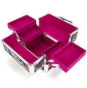 Качественный кейс-органайзер Абстракция имеет яркий дизайн, рельефную поверхность, аккуратно покрытую лаком, прочную застежку и кодовый замок. Внутри спрятаны 4 выдвижные полочки, обтянутые ярким бархатом, а посередине - один большой отдел.