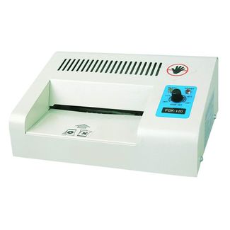 FGK 120 — офисный ламинатор для пропусков, доверенностей и фотографий. Особенности FGK 120: Металлический корпус Инфракрасный нагрев валов Мощность 230 Ватт Максимальная толщина ламинируемого документа 1,5 мм. Время нагрева 3 минуты Индикатор готовности. None