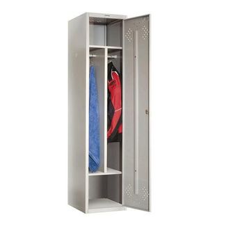 Металлический шкаф для раздевалок (Локер) предназначен для хранения одежды в производственных, спортивных и других помещениях, а также для организации камер хранения.Шкаф имеет 1 секцию с двумя отделениями для одежды, отделением для обуви и головных уборов. На двери установлен ключевой замок «Практик» (2000 комбинаций). В комплекте 2 ключа. Дверь имеет вентиляционные отверстия. Сборку шкафа можно осуществлять 2 способами: на зацепах или саморезами, крепеж присутствует в комплекте. Есть возможность установки двери в любом направлении открывания. Конструкция шкафов позволяет скреплять их между собой. В комплект входят: перекладина, крючки. Шкаф поставляется в разобранном виде. Высокие стандарты качества продукции компании "Промет" достигаются за счет использования ультрасовременных технологий с контролем на всех этапах производства, что, в свою очередь, позволило стать безусловным лидером рынка как по качеству, так и по цене. None