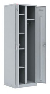 Габаритные размеры: 1860х600х500 ммШкаф разборный металлический двухсекционный. В одном отделении - полка для головного убора и перекладина для вешалки, в другом четыре регулируемые полки по высоте. Врезной замок. Полимерное порошковое покрытие. None