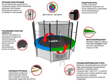 Батуты UNIX line разработаны для ежедневного использования детьми и взрослыми, устойчивы к неблагоприятным погодным условиям и соответствуют международным стандартам качества None