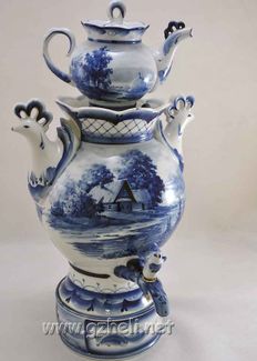 - Самовар фарфоровый счайником. Гжельский фарфор. арт. 3005 по выгодной цене 20 600 р. руб.;