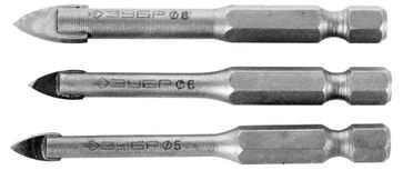 Набор ЗУБР "МАСТЕР" Сверла по кафелю, керамике, с двумя режущими лезвиями 5, 6, 8мм, 3шт