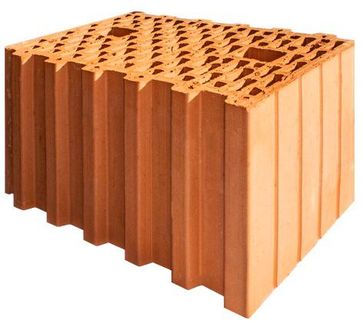Крупноформатный керамический поризованный кирпич ТЕРМОБЛОК 10,7 NF применяются для возведения несущих внешних однослойных стен, не требующих дополнительного утепления. Размер: 380х250х219мм. Прочность: М100. Морозостойкость: 50 циклов. Масса: 16,5кг. Теплопроводность: 0,15 Вт/(мC). Водопоглощение: 17 %. Количество на поддоне 60 шт Цена за 1 шт., мин. заказ 1 машина, предоплата Страна производства: Россия