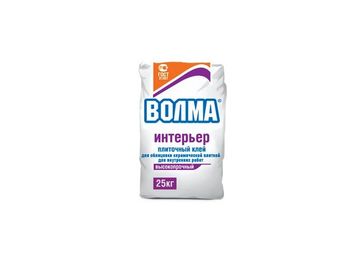 Плиточный клей ВОЛМА-Интерьер- сухая клеевая смесь на основе портландцемента, фракционированного песка и модифицирующих добавок. Для облицовки стен и полов керамической плиткой малого и среднего размера в сухих и влажных помещениях различного назначения. Подходит для облицовки полов керамогранитом малого и среднего размера. Рекомендуется использовать для внутренних работ.