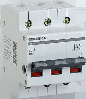- Выключатель нагрузки (мини-рубильник) ВН-32 3Р 100А GENERICA | код. MNV15-3-100 | IEK по выгодной цене 352 р. руб.;
