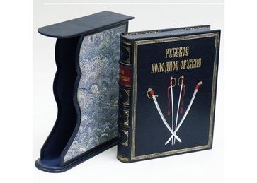 Русское холодное оружие, А.Н.КулинскийФормат 21 х 26,5 см Эксклюзивный французский переплет ручной работы,на шнурах, шагреневая кожа, тиснение золотом 22 карата,инкрустация на корешке, бинты, ручная окатка золотом.Форзац из мраморной бумаги ручного крашения, ручная накатка дублюры, окрашеный и гравированый золотом обрез. Футляр None