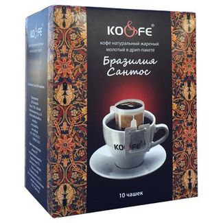 - Drip Bag Coffee Бразильский сантос свежеобжаренный молотый в фильтр-пакете 1уп. (10шт.) по выгодной цене 323 р. руб.;