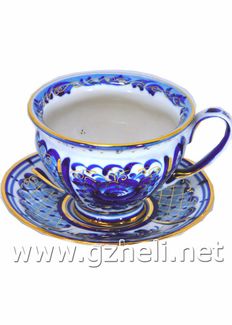 Закажите Чайная пара в золоте "Незабудка". Гжельский фарфор. арт. 2579 у компании Гжель, гжельский фарфор, интернет – магазин подарков и сувениров. в Москвена портале Alloy:
