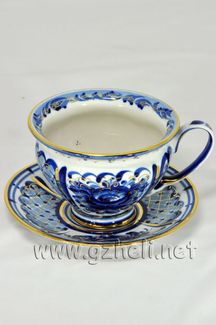 - Чайная пара в золоте "Незабудка". Гжельский фарфор. арт. 2579 по выгодной цене 1 590 р. руб.;