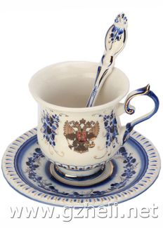 Закажите Чайная пара в золоте "Гранат" с Гербом РФ. Гжельский фарфор. арт. 2370 у компании Гжель, гжельский фарфор, интернет – магазин подарков и сувениров. в Москвена портале Alloy: