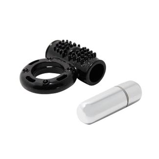 Вибрирующее кольцо для усиления эрекции с 10 режимами вибрации. Внутренний диаметр кольца - 2,8 см. <br>Длина вибропули - 6,5 см. <br>Батарейки в комплект не входят. None