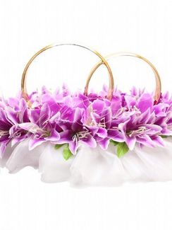 Кольца на свадебную машину Gilliann CAR026 Нарядные кольца ручной работы для оформления автомобиля жениха и невесты. Два сверкающих золотых кольца утопают в шикарной цветочной композиции, собранной из красочных фиолетовых лилий и пышной белоснежной тафты. Роскошное украшение для машины Gilliann CAR026 сделает день свадьбы еще более ярким и незабываемым, словно магнит притягивая на себя взгляды окружающих. Для изготовления композиции используются искусственные лилии высочайшего качества, которые по своей красоте не уступают живым цветам, но при этом не завянут и не потеряют вид в течение всего дня. Гладкие золотые кольца создают волшебную игру света и смотрятся очень презентабельно. Длина 50-60 см, ширина 40 см Материалы и декор: кольца, тафта, цветы. None
