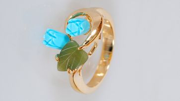Закажите кольцо бирюза-нефрит 2 розы1 лист ободок у компании Lotus в Москве на портале Alloy:
