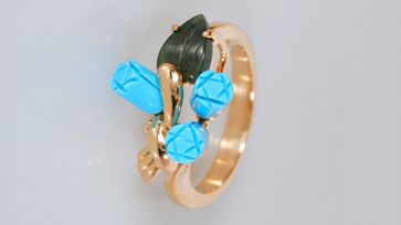 Закажите кольцо бирюза-нефрит 3 розы 1 лист циркон у компании Lotus в Москве на портале Alloy: